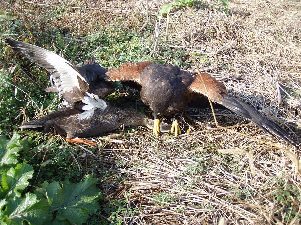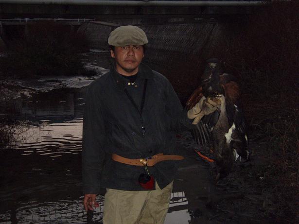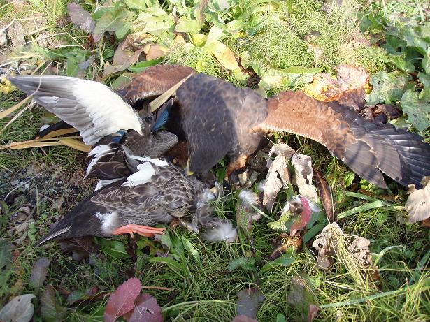 その後、田んぼの用水でカモに羽合せした際には、チョウゲンボウが襲ってくる。ん〜何か上手くいかない・・・。 仕方ないので、いつもの場所に行きカルガモを捕まえる。