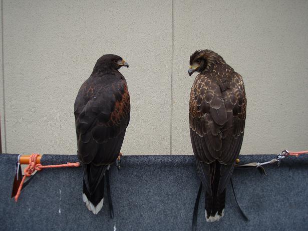 2羽並べてみました 今日も昼からいつもの場所でフリーフライトの訓練を1時間ほどする。訓練後は夕方まで外に晒すことにしました。2羽を並べて見てみると時雨は換羽が終わる頃には忍のように色が濃くなっているんでしょうね。