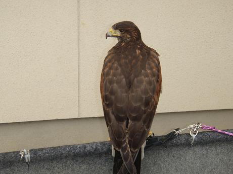 鳴き声を聞いたことがありません。 この鳥は鳴くことが出来るのだろうかと心配するほど今日まで鳴き声を聞いたことがなかったのですが、本日、河童で鳴き声を聞くことができました。 今日は、イベントや狩場での共猟が他のハリスと出来るかを確認するために、神内さんに頼んで先輩ハリスの光耀と楓との3羽でフリーフライトをさせて頂きました。 光耀と楓とのフリーフライトを始めると、雛の「ピーピー」声で鳴き始める。初めのうちは鳴き声を聞いて感動していたのですが、だんだん自宅に帰宅しても鳴き続けるのかと心配するほどでしたが、先輩ハリスがいなくなると、いつもの鳴かない雫になり、一安心。