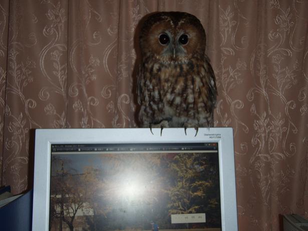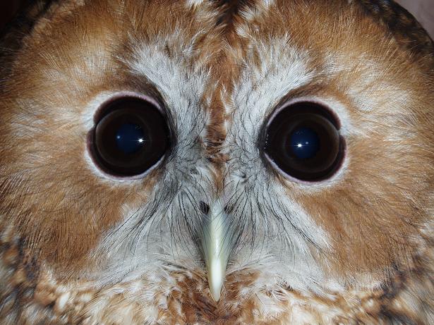 ズームイン! メンフクロウの顔のアップが可愛かったので、真似して撮って見ました。