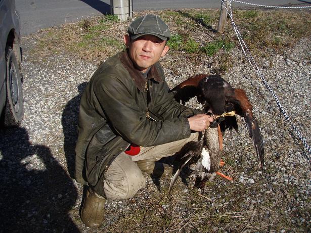 みんなで出猟 本日は、神内さんと友人の池上さんと猟に出る。獲物を確認すると順番に羽合せていく。良い場所で順番が回り、頂くことができました。夜は居酒屋にて反省会を開催し、久しぶりに鷹談義でハイテンションになりました。