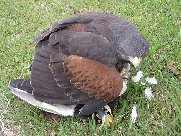 ルアー 昨晩は酒を飲みすぎ、今朝は二日酔い気味・・・。気持の悪い中、時雨の訓練をする。今日はルアーの訓練をやってみると、上手にエアキャッチ!いい感じです。そんななか、上空を見上げて見ると、