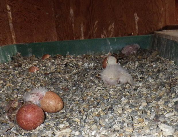 今年は早い!? 2月15日に1卵目を産んでいたラナーハヤブサのペアですが、昨日から嘴打ちが始まりました。・・・で、本日3羽が孵化!!まぁ、今後もちゃんと育てるとは思いますが、まだまだ心配です。ホント、この時期は喜んだり、悲しんだり・・・期待以上のことが起きたり・・・・とりあえずロシア産オオタカ弟は、3個目を産卵!4個目に備えて・・・かみさんの話ではGBスパ弟も受け入れ態勢が取れている様子。