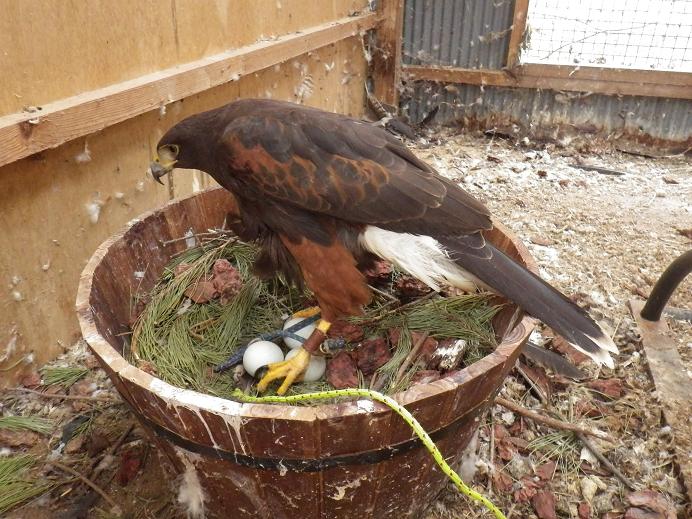 むだ? ハリスホーク弟は無駄な抱卵!?を続けています。