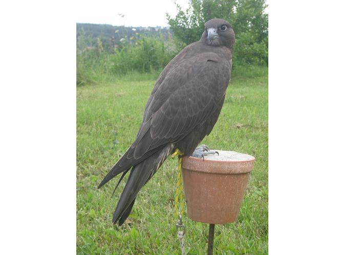 ブラックセイカー セイカーハヤブサの“メラニスティック”!?ハイブリッドでは無いようです。ブリーダーからのオファーです。すごく気になりますが・・・池上鷹匠補と今期最後(私は飛礫の・・・)の訓練を行いました。