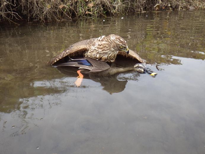 ただ、先日福沢鷹匠補に笑われた「獲物を獲り損なったら、着水後その場で水浴び!」の場所で、獲り難いと判断した反対側のしかも一番広い部分(15〜20m程)で、横合いから追いつき獲り切ったのは、良かったかなぁ・・・と!!