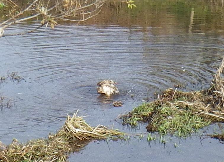 肉色が高い?シアミが落ちた!?なんかのんびりの飛礫! カルガモの群れに羽合せするも、カモの上を行き過ぎる?かと思いきや、そのまま上から突っ込み引っ掛ける・・・しかし、獲り切れず川の中・・・・ しかし、その後はそのまま水浴びを始める始末・・・