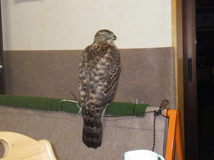 朝から出来上がったボウパーチを受け取りにでる。 ボウパーチ「弓架/ゆみぼこ」はその名の通り弓型の架である。半円形というか、2/3円位の鉄棒を曲げた物にリングが付き、鷹が留まる所には人工芝(人工芝の他には縄や革が巻かれる場合もあります)が巻かれている。 形状としてはリングが鷹の動きに合せて、スムーズに移動し、足回りに大緒が絡まないこと、本体の熱伝導に関しての工夫・・・など、考える点がいくつもあります。 日本へは波多野鷹匠が導入したと言える道具でそれ以前は知る限りでは使われていない。 当時は、ほとんどの方が「鷹を見下ろし近づくのが良くない。」「鷹が動ける範囲が大きいのが良くない。」などと言ってはいましたが、今ではスタンダードな道具となっています。 また、リスクが無いわけではなく、寄生虫のサイクルが分断できない事などが上げられます。