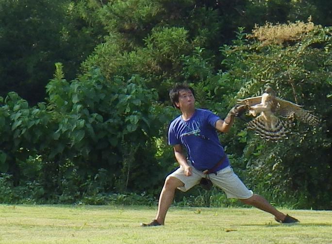 鷹匠補研修会とは・・・ 鷹匠や鷹匠補を目指す方々が参加する研修会で、会員であり初心者研修会に参加された会員に参加資格があります。あくまで、実演等において一定の知識や技術を身につけてもらう為の研修で、どちらかというと「協会にとってお手伝い願える人材」の育成が主な目的です。 逆に言うと、参加されている方々は、お手伝い願える貴重な人材なのです。