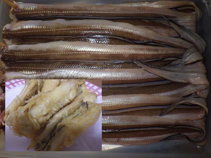 夏が旬!?の穴子!! 子供の頃は魚嫌いで、ツメ(甘ダレ)の味から、あなごとウナギを好きになり、寿司と言えば「穴子/あなご」と言う私でしたが・・・最近は魚大好きです。 もちろん、あなごも大好き!! 昨晩、F氏に捌き立てのあなごをたくさん頂きました。 「てんぷらで・・・」と言われたので、とりあえずてんぷらにしましたが、たくさんあるので「残りは煮ようかなぁ!?」等と考えていましたが、サクサク食べていたらどんどんなくなる。かみさんもさっさと揚げてしまい、すべててんぷら!!山盛りです。それもそうこうしているうちに次女の口に入るまもなく(寝てたので)・・・完食!!