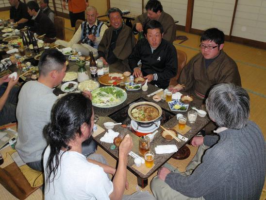 夜は「豆馬○」でシシ鍋を囲んで・・・