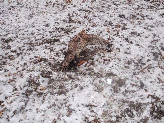朝から雪(この辺では大雪) 敷地でハリスホーク♀、楓を飛ばす。 楓は雪の重みで頭を垂れる的な、竹にも珍しく止まる。 しかし、楓が止まると雪が落ち、竹がグ〜ンとリフトアップ!!楓はえっ?てな感じ!少し飛ばして修了!!