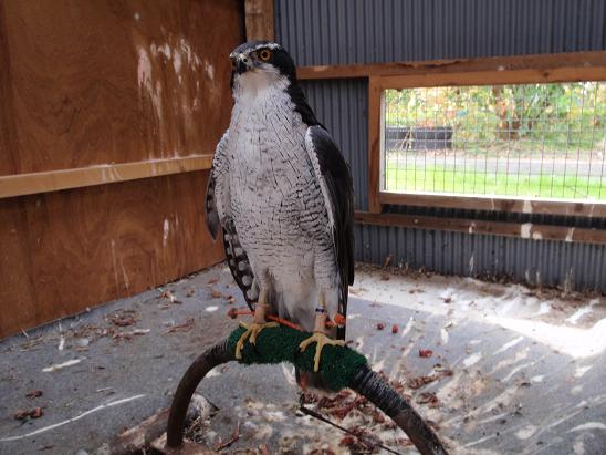 弥勒はもろ巣鷹(ハンドレアード個体)なのですが、本日は少し忍縄付きで渡りを・・・ Tパーチに降ろそうにも、拳にまとわりついてなかなか離れない。離れた瞬間に飛びついてくる。やっとの思いでTパーチに降ろしても、餌合子を出す前に飛びついて・・・・などなど、奮闘中です。 また、スタート直後、どう見ても頭をめがけて飛んできて・・・・飛び掛るのか、飛び過ぎるのか・・・と、拳を頭の上に出すと、上からひねりこむように拳に・・・ 今度は忍縄がゴチャゴチャに・・・ まぁ、予想外の動きに困惑していますが、巣鷹は「前の子と違う!」「こんな子ははじめて・・・」は当たり前で、通常の動きや態度と違うのがいても不思議ではありません。