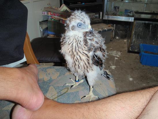 特徴が出てきました! オス親(たぶん)の「剣/つるぎ」は、記憶では・・・若鷹の時はかなり赤っ斑の個体で、かなり小柄・・・メス親の霞の若鷹の時はウクライナの特徴の良く出た個体で肩幅があり太めで、背面は黄土色に近い茶、腹面は白い(クリーム色)個体でした。間に出来たこの子は腹面は霞に似ていますが、背面は剣に似て濃い目の個体?のようです。まぁ、まだ羽根が一枚一枚広がって色が薄くみえるようになるため、判りませんが・・・