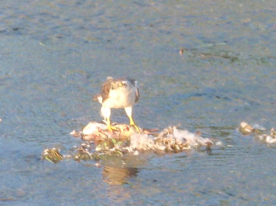 オオタカ見っけ! 長女を拾い、店に戻る途中・・・川の真ん中でお食事中のオオタカ(もちろん野生の)を見つけました。デジカメを最大望遠にして撮影・・・「オオタカだ!」と言うと、長女が「ホントだ!」と識別できるような距離・・・デジカメ構えても堂々とこちらを見てるようなやつ・・・もちろん、細心の注意をはらい食事の邪魔しそうなら、退散するつもりではいるのですが・・・・