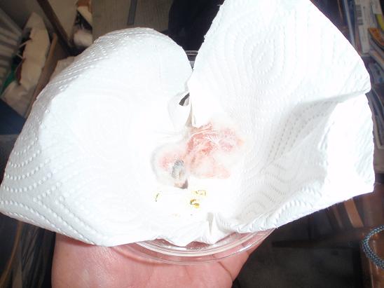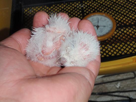 メガネフクロウの孵化・・・ 一昨日から、5個あったうちの1個の卵の嘴打ちが始まり、2日を要してやっと昨晩孵化!!いつもの事なんですが・・・まぁ、なんて弱々しい!!それでも懸命に生きて行こうとしています。