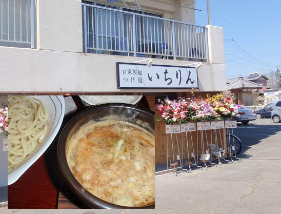 先日○和のブログで新店の案内が出ていました。 「つけ麺 い○りん」○和で修行された方だそうだ。 しかも、桑名市内に・・・ 当然、オープンに羽合せて突撃!! 5分前に着いたが、オープン初日なのですでにお客さんが・・・しかし、近所のおばちゃまのようで、記念のお花を貰う事の方が、優先順位が高いらしく、お店に入ったのも、つけ麺を食べるのも、このお店のお初になっちゃいました! お味はまぁ○和と比較しちゃいますが、もうちょっとガンバレ!といった感じ、でも良くなりそう・・・・