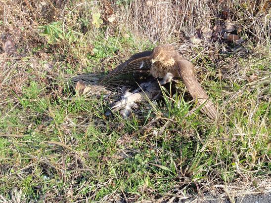 爪がコンクリートなどで擦れて坊主になってはいます。数日前までは掴んだ後に逃げられる・・が、多かったのですが、最近は絡んだら獲る。・・・になってきました。もちろん「野爪/のづめ」にしようとも思ったのですが、カルガモ程度ならむしろ掴み所を勉強させるのに良いかな!?という感じで、このままにしています。 兄(オス)なら迷わず野爪にします。カモ類は重いだけで、弟(メス)ならパワーで強引に獲り切れます。また、シアミ(他で言う「入れ込み」「入れ」・・・要は猟欲)が、よく出ているので、獲れなくてめげる感じもしないので・・・・
