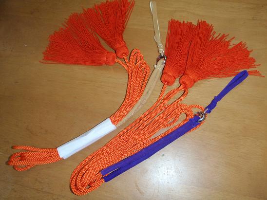 大緒・・・2 大緒の組紐が手に入ったまでは良かったのですが、岡村鷹匠に頼んでいたモトオシが遅れそう・・・2本作ったところで・・・ストップ!?真鍮のモトオシは2つあるにはあるだが・・・・