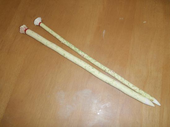 注文が入ったので、ブチ作りを行いました! 丁寧に皮を剥ぎ、一端をささら状に・・・もう一端を尖らせて・・・完成なのですが、単純な道具ですが、手間がかかります。 ちなみにこのサイズは小鷹用です。