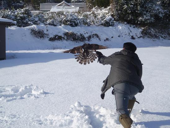 銀世界 2 退院するかみさんの迎えやら、親父やお袋への挨拶もあるので、早めにエサやり・その他の準備をして、遠藤鷹匠、福沢鷹匠補&池上会員を見送り店を出ることにしました。しかし、その前に刹那は少し飛ばしました!!