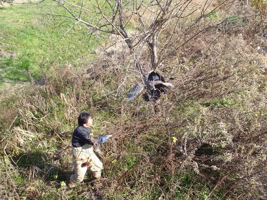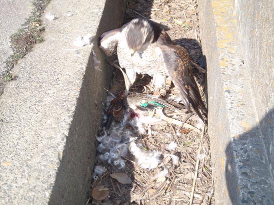 初のゴイサギ!! 昨日の晩から室伏鷹師が、神無の相手を受け取りにみえたので、福沢鷹匠補と池上氏にも声を掛けたところ、池上氏が今日の狩りがてらに遊びに来た。あちこち回るがあまり良い結果は出せず・・しかし、とある小場所でゴイサギを発見!カルガモはそれなりに獲っている池上氏ですが、地元ではほとんど出会うことがありませんので、獲れればお初です。ゴソゴソと這い出て飛び立ったところに、うまく羽合せ、10m程追いおかけて、獲る事ができました。
