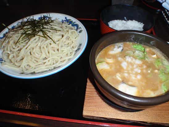 遠藤鷹匠とA女史、かみさんと○和へ・・・ 今日から始まる1日10杯限定の「牡蠣味噌つけ麺」を頂いてきました!!牡蠣の土手鍋を思わせる味付けに、ここの自家製麺が良く合うんです。またここは米屋なのでごはんが美味い!最後につけダレにつけながら完食!!