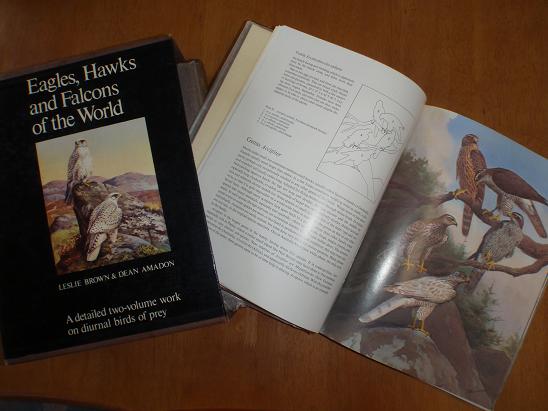 とある古本屋では¥120,000もの価格で売られていた2冊組みのワシタカ全種図鑑である。放鷹協会に入会当初に波多野鷹匠からすすめられて、まず海外で探すが・・・入手不可!!その後古本屋では・・・だったので、諦めていたのですが、たまたま出たビ○ターズのオークションで落札し手に入れる事ができました。ある程度競っても買うつもりで、まず¥5,000を入れて入札開始・・・・しかし、そのまま¥5,000で、落とせちゃいまして・・・