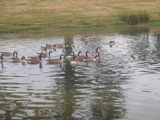 シジュウカラガン 7/11 敷地内にはいろんな動物がいるらしい・・・ハクチョウやコクチョウの他、シカ等もいるらしい・・・そのせいかあちこちフンだらけです。まぁ、直ぐに乾燥して砕いたわらの様になっていますが・・・