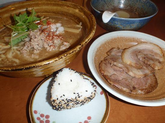 しばらく食べれないので、今日明日はラーメン三昧です。手始めに「真○」で、郷鳥そばのチャーシュー増を頂きました。おにぎりはランチサービス。濃い目のスープは、薄める為のスープ付・・・・麺を食べ終えてから、薄めるスープを足して完飲!!美味しく頂きましたが、しばらくお腹が・・・・