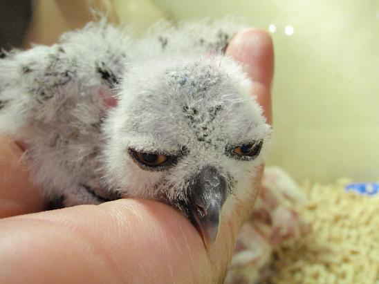 ド・アップ!! ミナミアフリカオオコノハズクのヒナ!!順調に育っています。また、メンフクロウに比べずいぶん成長が早いです。