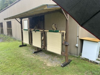 こいつどう!? 先日、岡村鷹匠が来店時に連れてきて引き取ったハリスホークのメスです。会社がらみの人が手垢付きの子を購入したんですが、調教が上手く行かなかった個体。素性が全然わからない子で、インプリントっぽいけどどうなんでしょう。イジるつもりはないのですが、自然繁殖に使えるかどうかもわからんし、イジった方が良いのかなぁ・・・!?