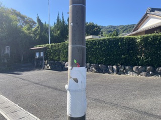 こんなところに居る! 近所のお寺さんの前の電柱に・・・ピンクのやつが!!台風の影響か風があります。あまり風がある日に飛ばせてなかったので、あおられます。まあ、経験はさせられたかと・・・