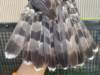 朝、河童の敷地内に設置されている電柱に鳥が止まっている。 朝焼けの逆光になるので、一瞬はカラス?と思ったんですが、オオタカでした。 たぶん、若鷹だと思うんですが、うちのが逃げたのか?と慌てて確認を・・・・ もちろん、野生の個体でうちの子達はいつもの場所に、いつものように・・・