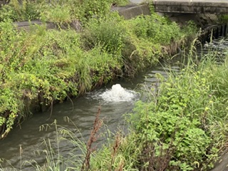 なんだこりゃ ただの用水なんだけど、水が吹き出してる。 「どういう状況?」水道管が下にあるとはおもえないし・・・・