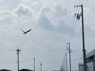 珍しいかも!? GGBの渡りの最中、モンビングされました。視界に入ってきた時はペルグリン(ハヤブサ)かと思ったんですが、若の弟鷹(オオタカ)でした。手前の電柱に居るのがGGB、奥の電柱に居るのがオオタカ!