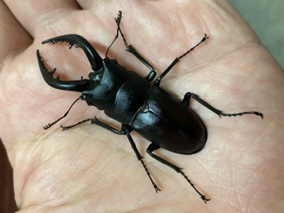 ◯美のノコ 昨日の夜、河童の敷地内のクヌギの木にて見つけました。この時期にこの綺麗な大歯のノコギリクワガタ!大きくはないけれど、なんか良いです。飼育する気はないので、撮影後には元の場所へ・・・・