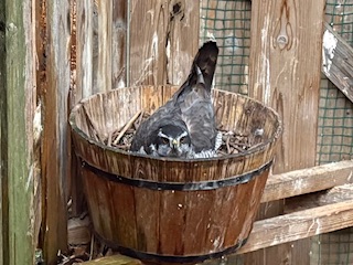 鶏卵を抱卵中だった桃ちゃん。 飛礫が2卵目を産んだので、鶏卵と交換して抱卵してもらうことにしました。 ちゃんと抱いてますね!! うちのフィニッシュ達はどの個体も乱暴で、卵を割ってしまうことがあります。 波多野鷹師にいろいろアドバイスを頂けているのですが、孵卵器の運用はあまり自信が持てません。 ですので、上手く抱いてくれるオオタカ×アメリカオオタカ ハイブリッドの桃ちゃんやオオタカ “ヨーロピアン ”の「手毬/てまり」、アメリカオオタカの「小浅/こあさ」には預けられるだけ預けます。 もちろん少しずつ孵卵器も運用するようにし始めましたし、成果も出始めているので保険と言うか、二段構えにしています。 また、この3羽は育雛も丁寧で任せられるので、初期の給餌が面倒な時期に楽することが出来ます。