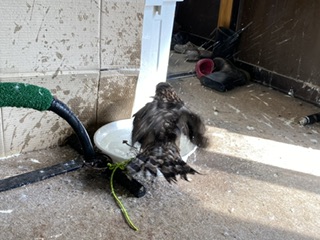 暑いですよ! なので、弟鷹は1日に2〜3回水浴びしています。ですが、兄鷹は水浴びが下手で足は容器内で水は飲むけどお尻は容器の外で絨毯に擦り付けています。逆にボウパーチに兄鷹は乗っていますが、弟鷹は乗りません。エサを喰う時とか、アヒル寝の時はシンクロ!