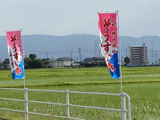 これは掛けてる!? 輪之内町の幹線道路脇にはためく「ぞうすい祭」ののぼり。調べると「輪之内の祭礼」と言うHPにはこんなふうに・・・7月 海の日 ぞうすい祭 / 四郷 神明神社 川の増水で流れてこられた神様を祭った事と、そのときに雑炊をお供えしたという事から、「ぞうすい祭」と呼ばれる。 もとは、7月16日。もともと輪中地区で河川の氾濫が多かった土地柄。やっぱり掛けてるんですかね!?
