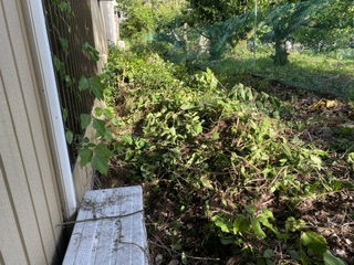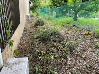 深夜に部屋の片隅から「コリコリ、カリカリ!」となにかが壁を執拗に引っ掻くような音がする。 このことは前にも書いたんですが、またです。 で、室内から壁を叩く、窓を開けて近くにあるエアコンの室外機を叩くなどしてみても、音は鳴り止まない。 なので、動物ではないだろうと思いましたが、あまり気になるので外へ出て想定される場所へ・・・・ あちこち見てみましたが、それらしきものは・・・・ その後、音は止みました。 ですが、やはり気になるので雑草と伸びてる木々を本日伐採!! さて、どうなることやら!?