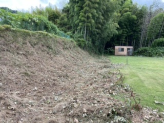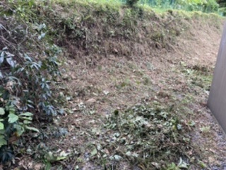 雑草多過ぎ オープンスペースの端っこの雑草を刈り払う!!刃がこなれてくると、葛や草の類いは良いのですが、笹は刈りづらい!?
