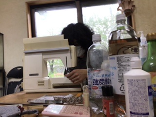 道具作り研修会 なかなか日曜日に休みが取れない会員のために都合が合えば・・・・今日は鳩袋と忍縄(筒)袋を作りました。