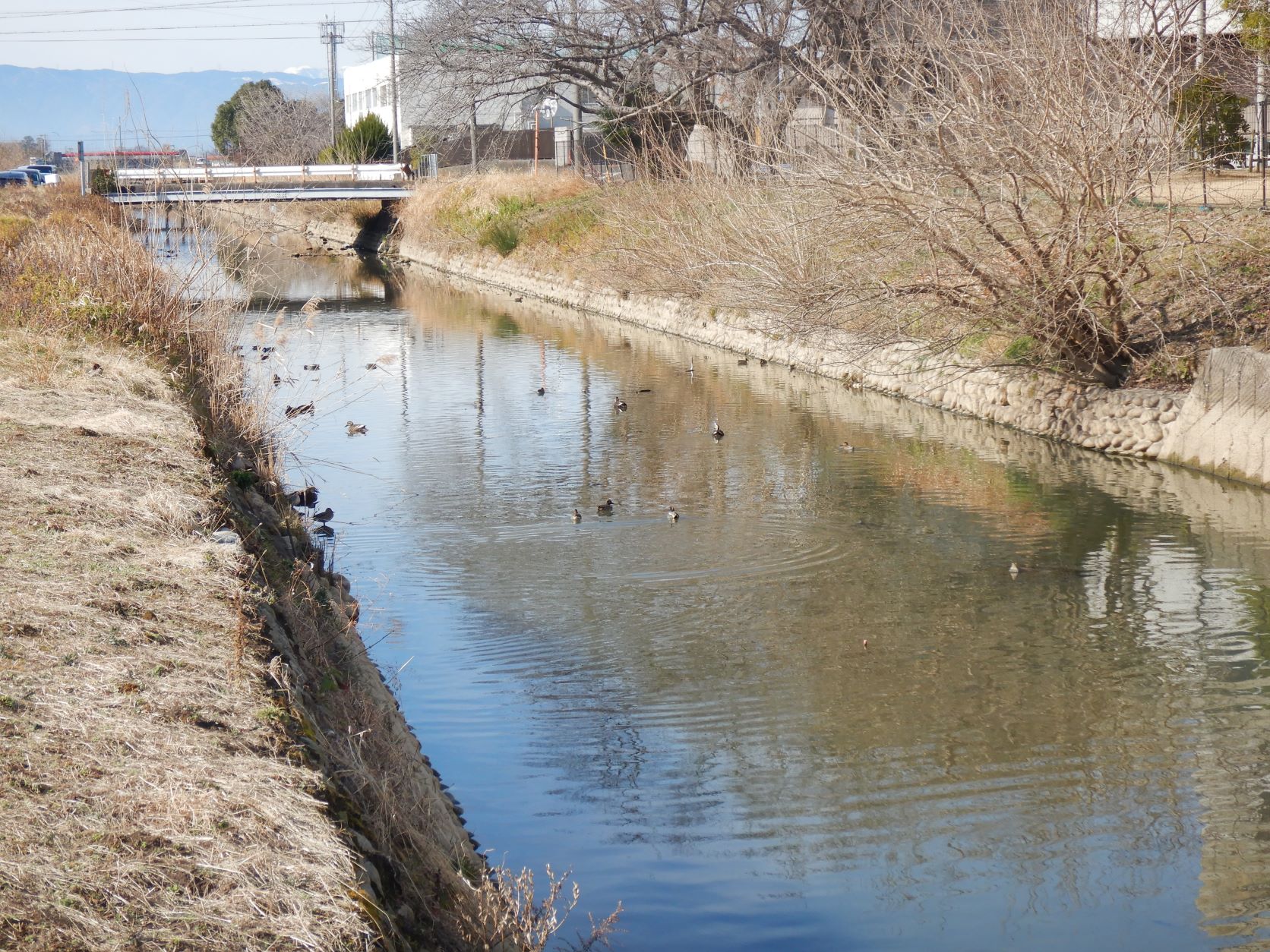 買い物もしたいので、帰る準備をしはじめました。 カルガモは羽を組んで、河童七号機の荷台の箱(フタのないダンボール)に一時的に入れていたんですが、軽めに組んでいたので外れてしまい、荷台を右往左往・・・ 挙句・・・荷台の幌の破れたところから、飛んでちゃいました!!