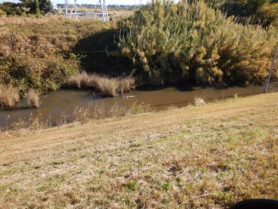 因をカルガモに当てて、外したように見えたので、餌合子を鳴らして呼んでいると、鈴の音はするんですが戻ってこず・・・ 状況がわからないので、行った先へ向かうと、川の中っぼい・・・ 視界が悪いので、川の中でなくとも川側から探した方がわかるかと川に入ると意外に深い。 近くで鈴の音はするものの、出てこず、見つからず・・・ 検討をつけたあたりを探そうと、川から上がろうとするも、上がれない。 ウロウロして、上がれる場所を探してようやく岸にあがれましたが、枯れ草の洗礼を受け・・・ その後、草、蔓、まあいろいろで薮から出れなかったらしい因を据上げました。