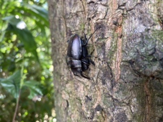 今年は 敷地内にあるクヌギの木の樹液があまり出ていないようで、カブトムシもクワガタ類もあまり来店していない。がしかし、なぜかほぼ樹液の出ていない樹皮にノコギリクワガタの雄雌が・・・夕方、ハンドルの異音で修理に出ていた河童七号機のお迎えに・・・・異音は消え、こんなに軽かったっけって感じ・・・・まだまだ、乗ります!