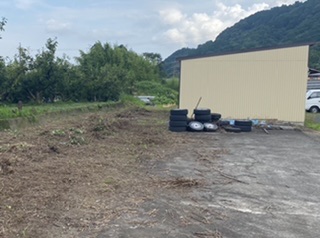 あと少し 雑草は、概ね刈りましたが、葛の蔓があちこちに残っています。あとは、刈りとった雑草の処理と大きめの石を拾い、残った葛の蔓をハサミで切ったら、とりあえず終了です。