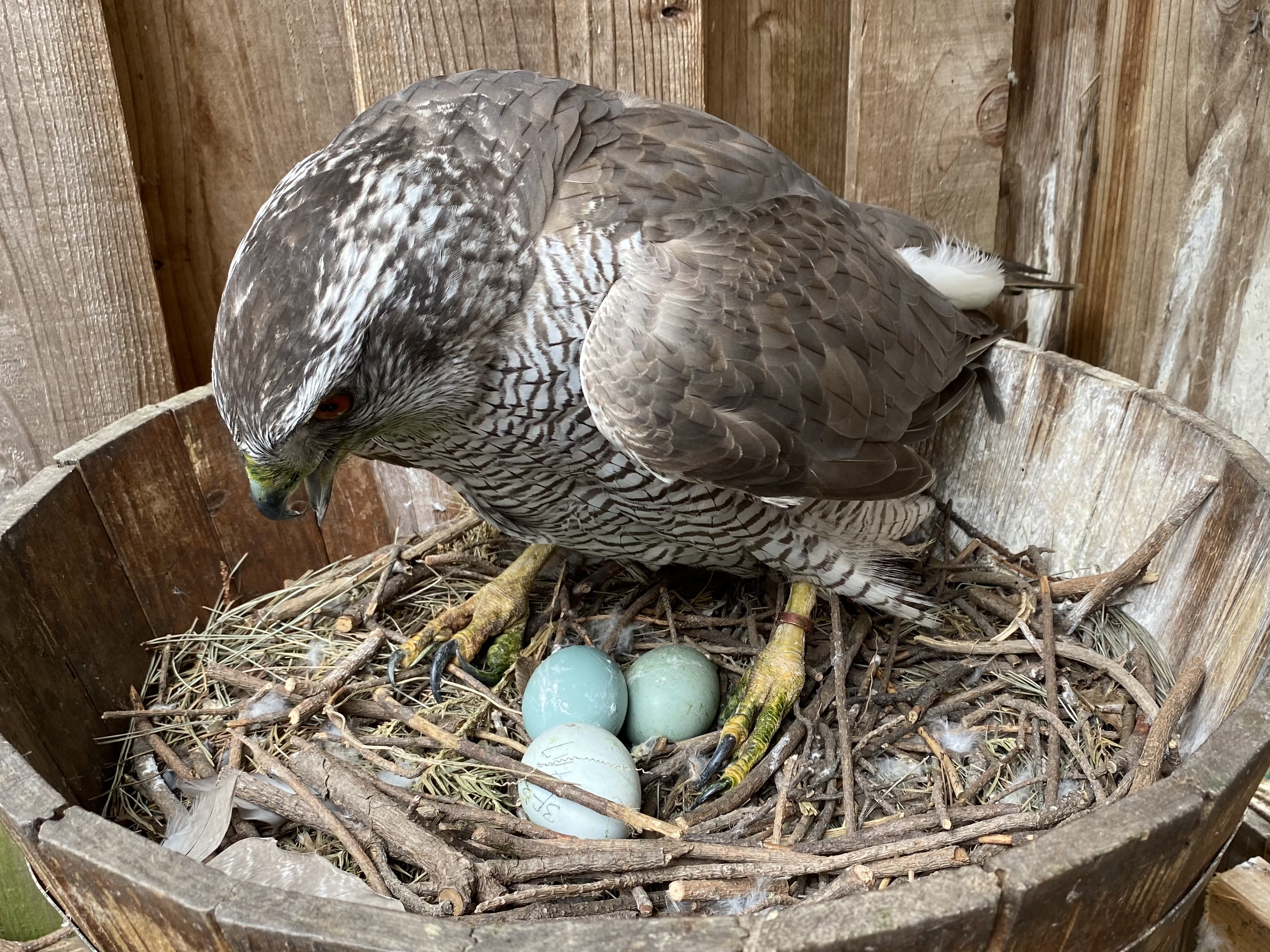 たまごとたまごのあいだには 「お客さんから預かっている 」オオタカ “ フィニッシュ ”のメスは、1卵目と2卵目の間が中4日空いた(通常は、中2日)ので、3卵目も時間がかかるかと思いきや、2卵目産んだ翌日にはワタシに卵が確認できる。それでも「明日!?(2日空いても25日)」と予想して遅れるパターンかと思いきや、まさかの逆に前倒・・・・!!