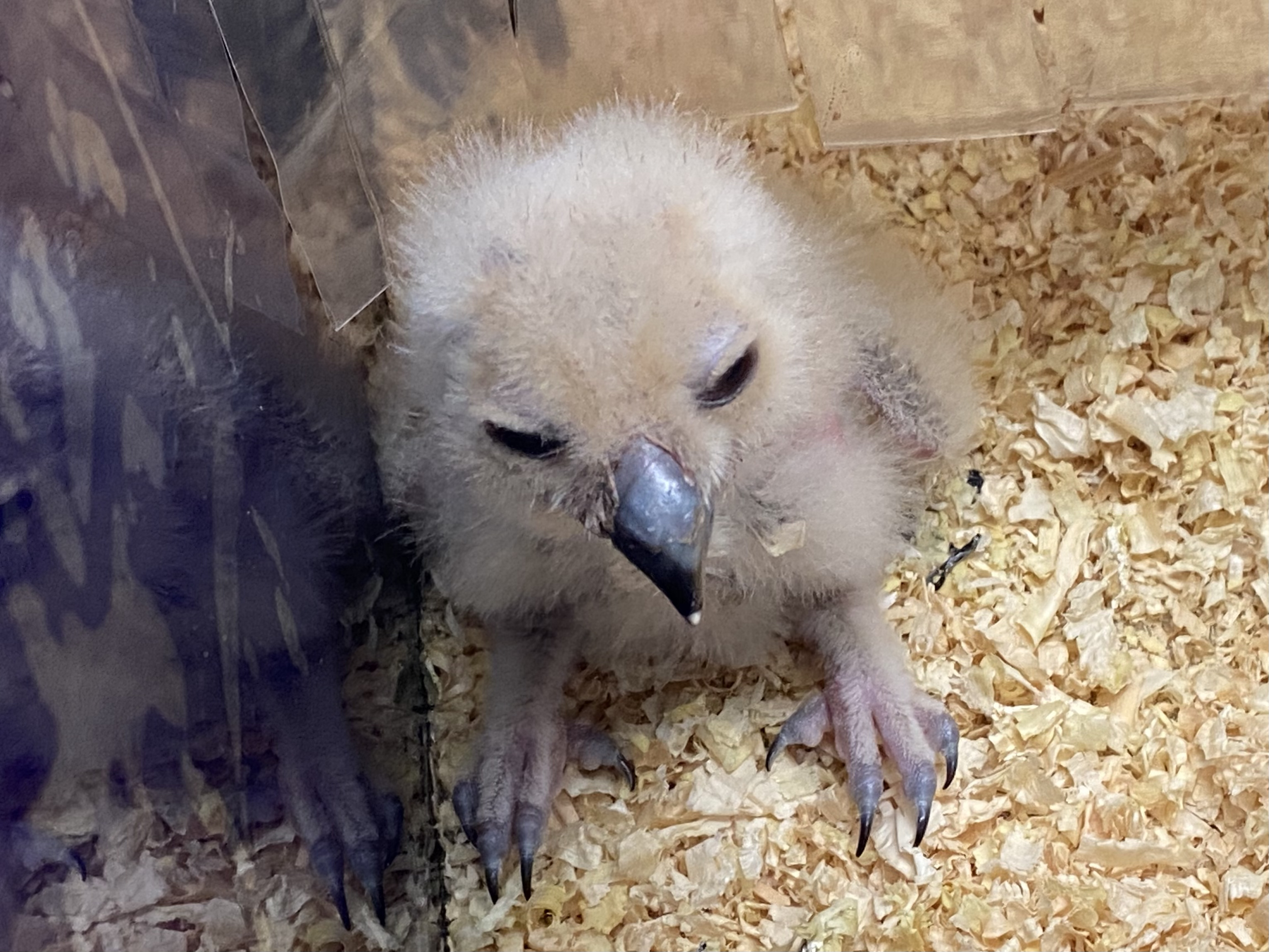 ヒナが孵化しなくなったベンガルワシミミズクの2ペアですが、一昨年お互いのペアの相手を入れ替えて様子を見ました。 すると片方のペアは、上手く行かなかったんですが、もう片方のペアは産卵から孵化しました。 ただ1羽だけしか孵化せず、昨年末も1羽のみ! 繁殖用にペアレントレアードにするにも1羽だけ育てさせるのは効率が悪い。 また、お金も必要ですし・・・ クラッチしてくれる事を期待して賭けに出ました!! そして、上手く産卵してくれたんですが予定を見誤ったのか、予定日には孵化しておらず・・・ 挙句に頭からウチをぶっかけられる始末! ですが、卵の色は良さげだったので、その後に期待しました。 それが先月末ちゃんと孵化!! DNA判定も行い、ペアレントレアード用に残すことが出来、さらに販売用も確保出来ました。 何人かの待って頂いているお客様がみえるので、嬉しい限りです。