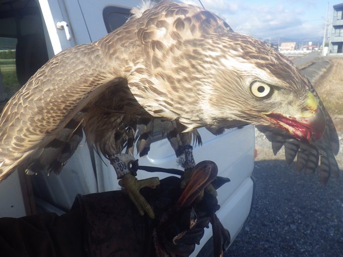オオタカ フィニッシュ 弟はカルガモしか獲らず、少し困っていました! おそらく、たまたまではなく、あえて避けているようで・・・・ カルガモ以外へのシアミが悪く、ある意味獲物の弁別(獲りたくないもの、獲っちゃいけないものを良い意味で分けてくれれば良いんですが)をしてしまっている・・・感じでした。 それでも、オナガガモを獲らせようと、オナガガモとハシビロガモ、ヒドリガモが居るところで、オナガガモに羽合せてみました。 すると、良い感じだったにも関わらず、手前で落下! 水面ギリギリのハシビロガモを掻っ攫いました! オナガガモが食べたかったんですが、これはこれで・・・・ とりあえずカルガモ以外の獲物は初!!